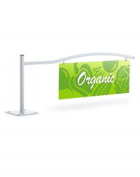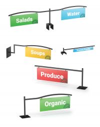 STELLAR AISLE MARKER, CURVED 24" ARM, 9" UPRIGHT, 4" SQUARE BASE, BLACK |