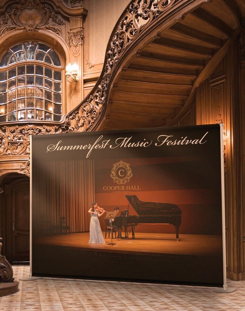 Create the "WOW Effect" at your next event by displaying beautiful graphics on our new elegant ultra wide stands.