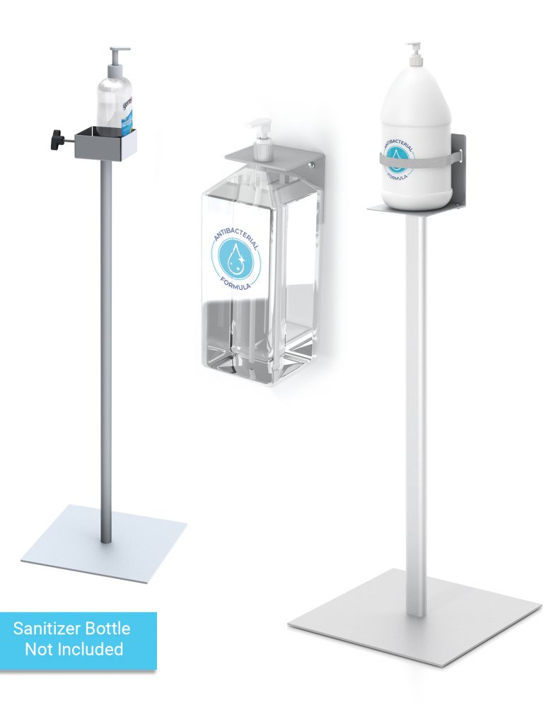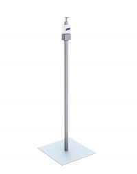 HAND SANITIZER PUMP STAND, FIXED HEIGHT, SQUARE BASE, SILVER |