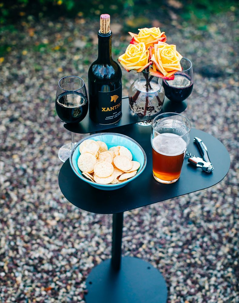 SideBar holds your drinks, plates, and bowls in style. Lightweight (11 lbs), you'll find yourself bringing it with you.