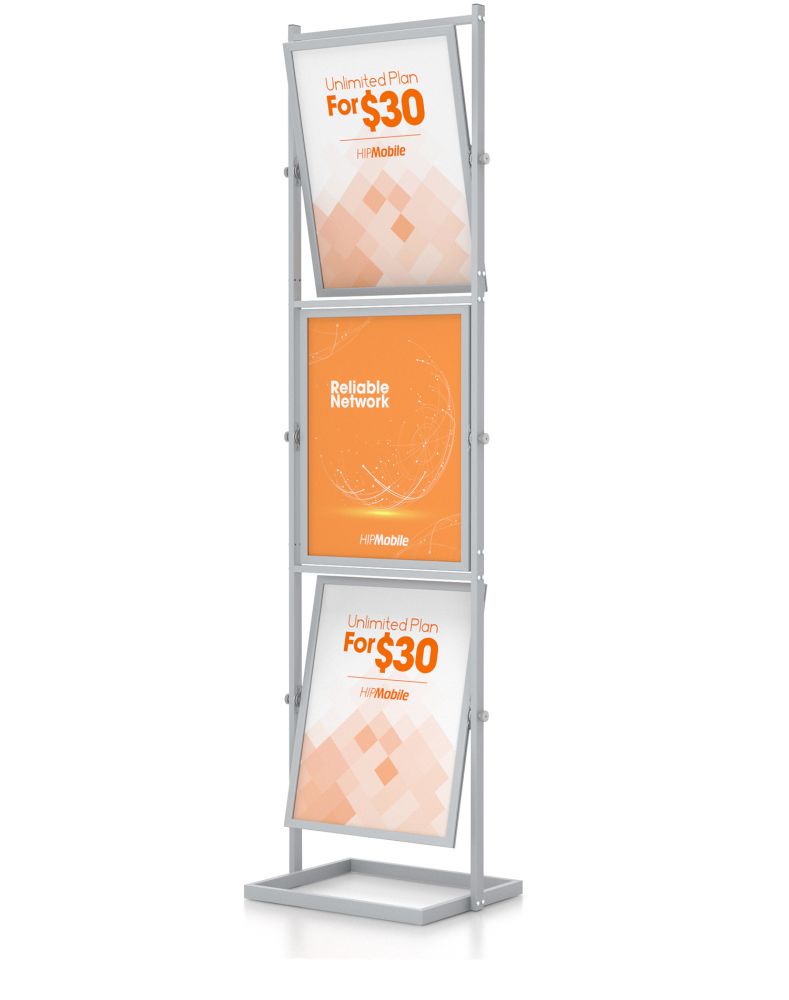 POSTER SIGN HOLDER, 22X28 3 TIER. SILVER, WHEEL BASE |
