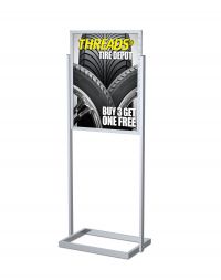 POSTER SIGN HOLDER, 22X56. SILVER, WHEEL BASE |