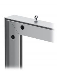Our Ceiling Charisma Hung Charisma Single Sided frames include eye hooks (minimum 2 per frame, larger frames may include more eye hooks). If you need a floor standing SEG frame, our Charisma Single Sided Floor Mount units include steel bases, with all the work already completed to make attaching the bases easy. Our steel bases are texture powder coated for a durable finish.