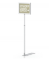 These units make great pallet sign holder combo kits because they are designed to easily integrate with rigid, styrene or paper graphics. The PLT-1 adjustable pallet sign holder is a heavy duty shovel base pallet stand made with telescopic aluminum tubing that adjusts to up to 72” high and comes in a standard satin silver finish. It has a 24” cross bar with hooks fixed at 18” on center to easily hang graphics. Instead of hanging graphics from the hooks, this height adjustable sign holder also works as a pole pocket sign holder. Easily slide pole pocket graphics over the top crossbar.