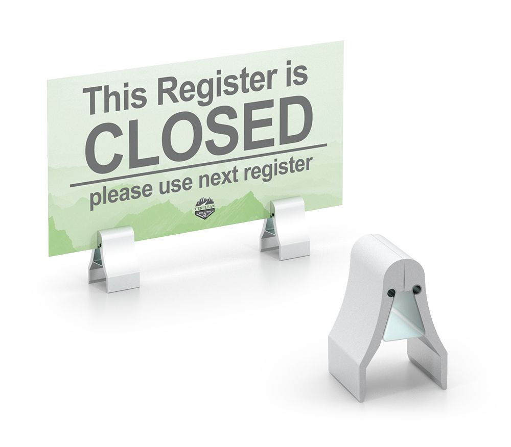 DOUBLE CLAMP ON SIGNHOLDER, CLAMPS ARE RIVETED TOGETHER AND PIVOT, SILVER |