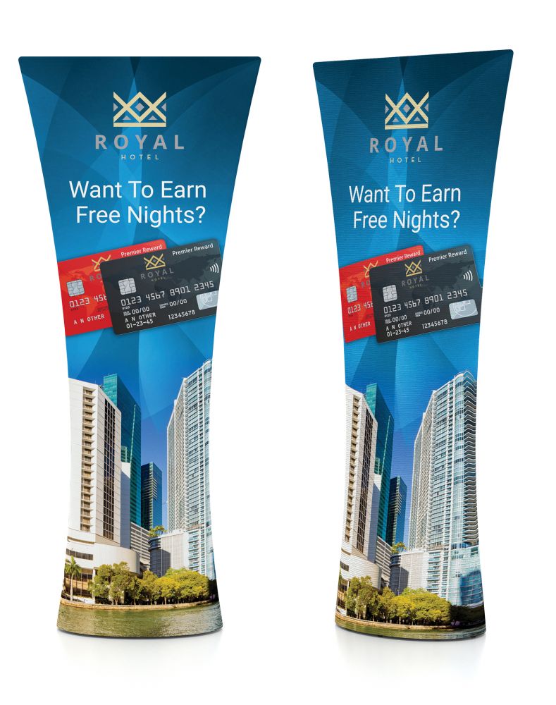 APC1 CURVED TOP STAND, DOUBLE SIDED GRAPHIC. GRAPHICS ARE DYE SUBLIMATED PRINTED ON WRINKLE FREE, STRETCH FABRIC